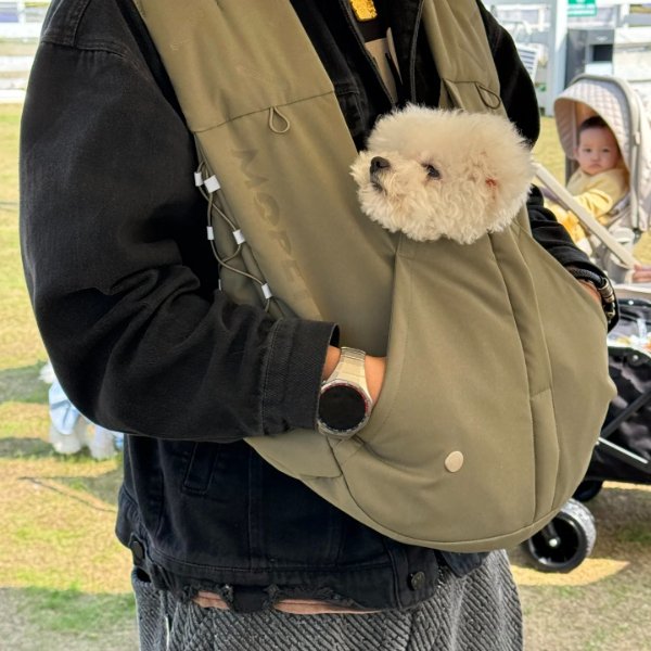 Love this product! Allows me to hold my dog and have hands free to do other things. Quality material and easy to put on and adjust.